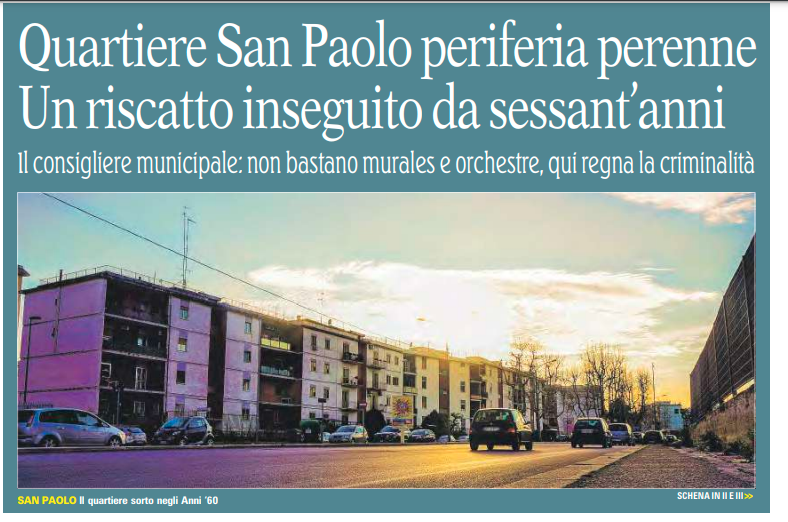 Ho rilasciato questa intervista con un nodo alla gola, un buco allo stomaco. Ma sono abituato a lavorare per risolvere i problemi, e il primo passo per risolvere “un” problema è riconoscere che esiste “il” problema. Oggi su in prima pagina su La Gazzetta del Mezzogiorno la mia intervista. Ecco alcuni estratti dell’intervista. «Non ci si può accontentare di una … Read More