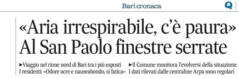 Sul Nuovo Quotidiano di Puglia online le mie dichiarazioni sull’incendio scoppiato in Zona Industriale. <Appena si scende in strada si sente molto forte questo odore come di carne bruciata – sottolinea Stefano Franco, consigliere del Municipio 3. – L’aria è ancora irrespirabile, anche se dopo un po’ ci si abitua. A casa siamo ancora costretti a stare con le finestre … Read More